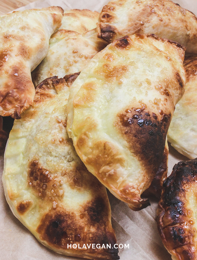 - Armar las empanaditas, pintar con la doradura y espolvorear azúcar por encima.