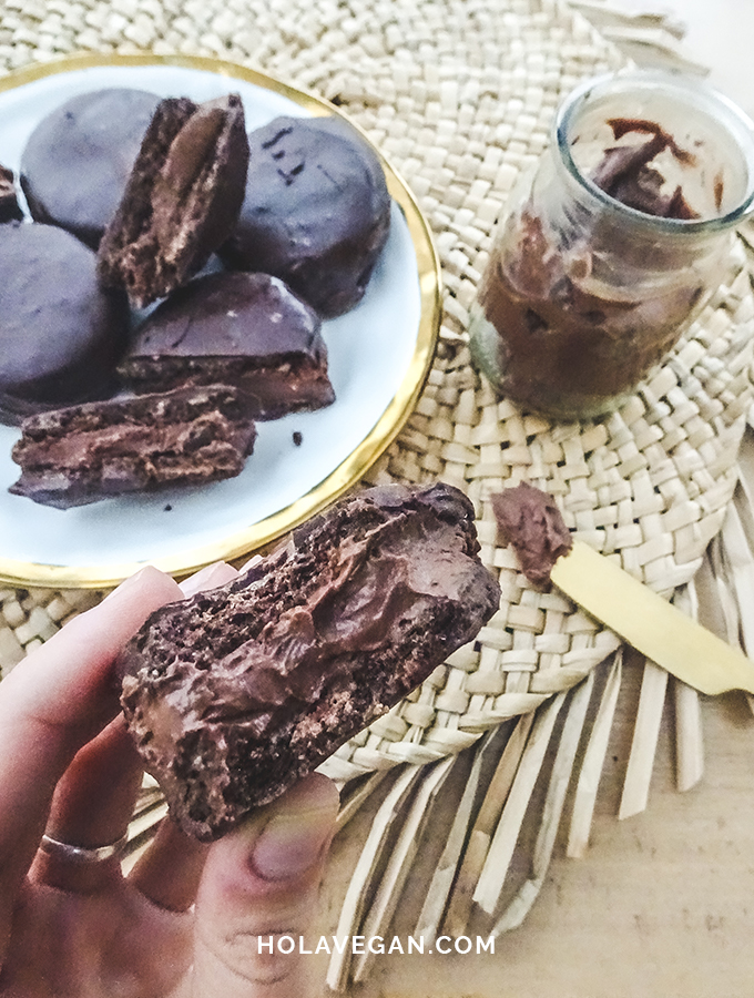 Para ser un poco más original lo primero que hice fue reemplazar la clásica ganache (que es lo que verdaderamente llevan dentro estos clásicos alfajores) por mousse de aquafaba.