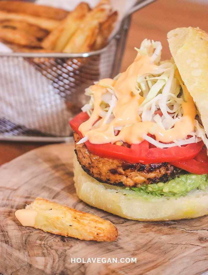 Comer fast food no tiene por qué ser sinónimo de comer chatarra. Prepará estas burgers marinando el tempeh y grillándolo hasta que quede crujiente por fuera y tierno por dentro. Luego podés disfrutarlo en pan (como me gusta a mí) o al plato.