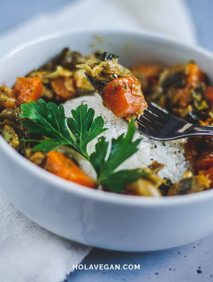 El miércoles pasado, a través de nuestro canal de YouTube, Srta. Bimbo nos enseñó a preparar este delicioso curry, 100 % vegetal y económico, ya que hasta hicimos la leche de coco caserita!
