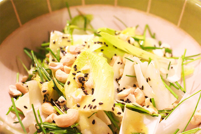 Las endivias son muy ricas en fibra y mejoran la circulación. Ayudan a regular los niveles de azúcar en sangre y a reducir los niveles de colesterol. Estimulan la salud del intestino gracias a una acción prebiótica en el sistema digestivo. Su consumo es recomendado en épocas de otoño e invierno, porque ayudan a aumentar las defensas al reforzar el sistema inmunológico. Se pueden comer crudas o cocidas, pero crudas, como todos los alimentos, mantienen intactas sus propiedades. Como sus hojas son ahuecadas, es divertido usarlas a modo de “cuenquitos” y rellenarlas con cosas. Una buena idea para un finger food o una entrada, podrían ser las hojas rellenas con guacamole. Una combinación bastante similar a la que hay en esta ensalada, contrastando el crocante de la hoja de endivia con la cremosidad de la palta. Esta ensalada es fresca y deliciosa, súper liviana, para comer sola o acompañada de verduras grilladas. Ideal para el mediodía. A probar las endivias!