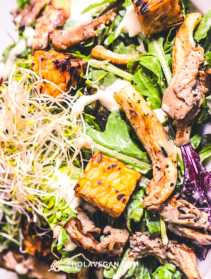 El aderezo? Pues, vegan mayo, jugo de limón, aceite de oliva y ajo en polvo, se hace en menos de 1 minuto!