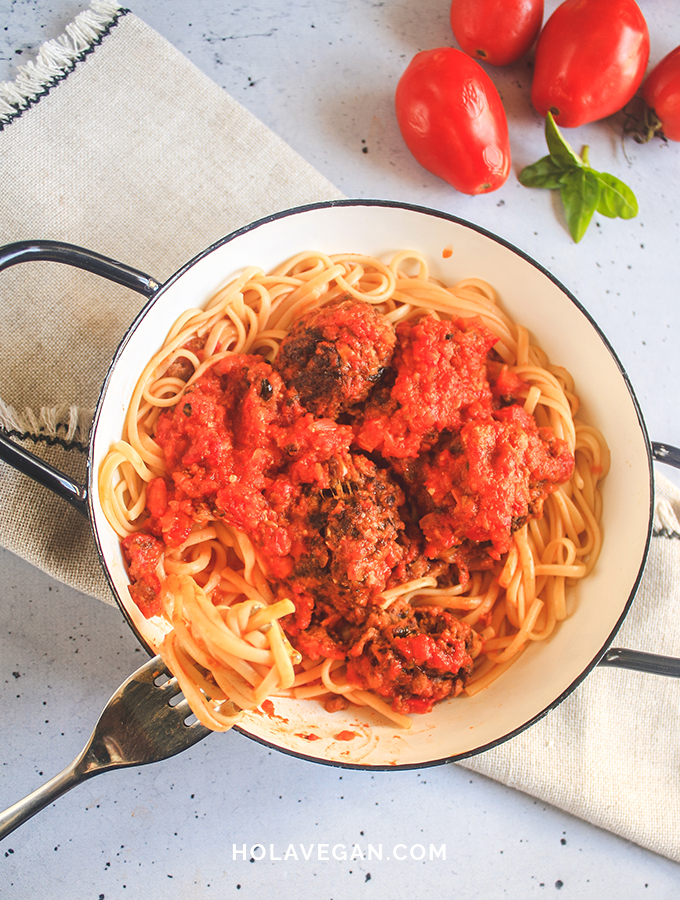 Resulta que tenía unos tomates bien maduritos de Che Banana que estaban ideales para hacer una salsa y como nos enteramos de que señoro va a ser padrino ¡albricias!, me acordé de que hace tiempo quería probar hacer estas meatballs sin rebozar con el fin de preparar este famoso plato de espaguetis. El universo complotó, así que puse manos a la obra.