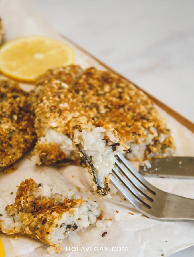 Nunca pensé que extrañaría comer las milanesas de merluza hasta que, la otra vez, Sabri mencionó la idea de emularlas a base de arroz y alga nori. Más o menos como hicimos este no-atún. Y le dije: “si querés yo las hago”. Sabri me dijo que sí, ya que ella tenía otras recetas pendientes y me dio un consejo: “usá el alga nori también para imitar la piel”.