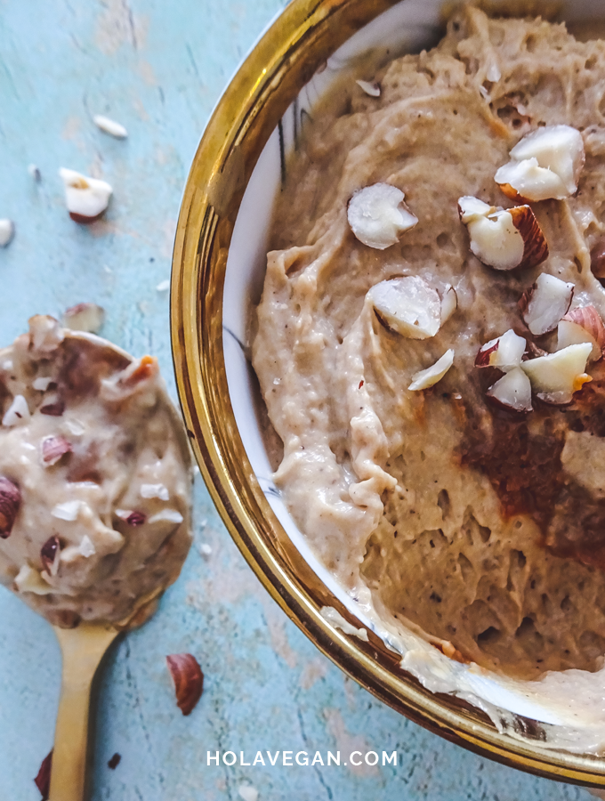 Y si te estás preguntando por qué necesitamos usar castañas de cajú y no integramos sólo el dulce de leche con el merengue, la respuesta es porque para que el merengue se convierta en mousse, necesitamos un medio graso que le de estabilidad a la preparación, en el caso de la mousse de chocolate, la grasa se la aporta el mismo chocolate y en este caso se la aportarán las castañas y el aceite de coco.