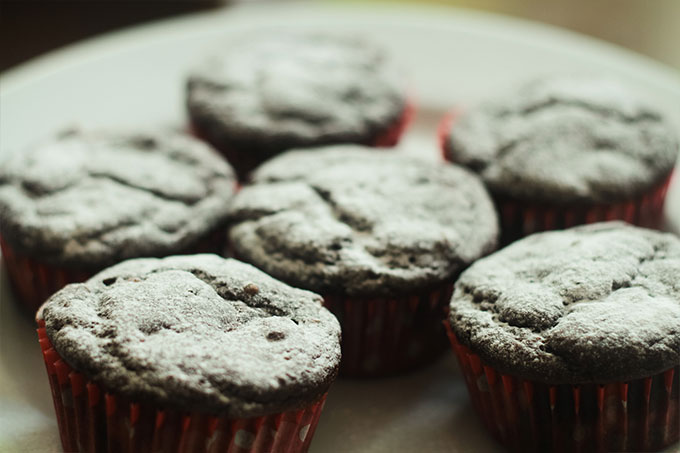 Banana + Carob Muffins with Pecan and Chocolate chunks