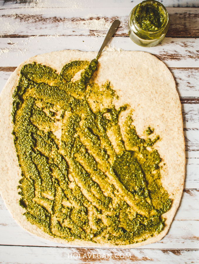 - Untar con el pesto toda la superficie.