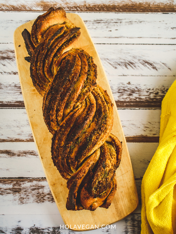 Y no sólo porque es un pan a base de PESTO, sino porque miren lo hermoso que es! Todo trenzadito, doradito, mmmm… se me hace agua la boca!