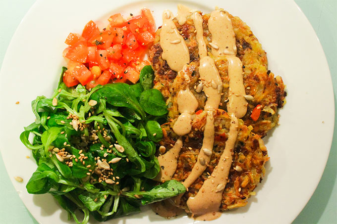 Para darles un sabor distinto les agregué unos hongos grillados picaditos y cebolla colorada rehogada. Acompañé con ensaladas y una salsa hecha a base de tahini. MMMMMMM
