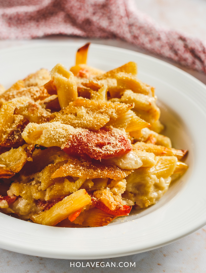 Este plato permite mil variantes pero hay dos puntos que hay que mantener fijos: 1) el queso y 2) la pasta. El queso tiene que ser uno que funda y se gratine. Mis recomendaciones son: queso cremoso, muzza de avena, de papa, de tofu o de maní. La pasta -seca-, por otro lado, tiene que ser tubular y corta: penne rigate, macarrones, coditos; pueden usarla en versión gluten-free, sin problemas.