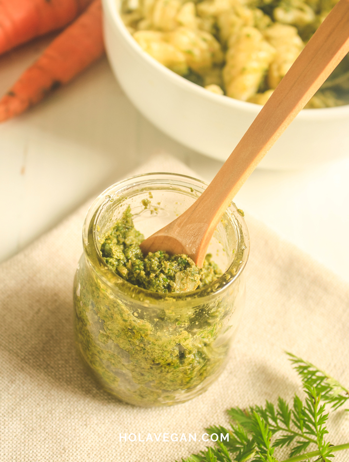 - 1 puñado de hojas de zanahorias (lavadas y escurridas y sin los tallos largos)