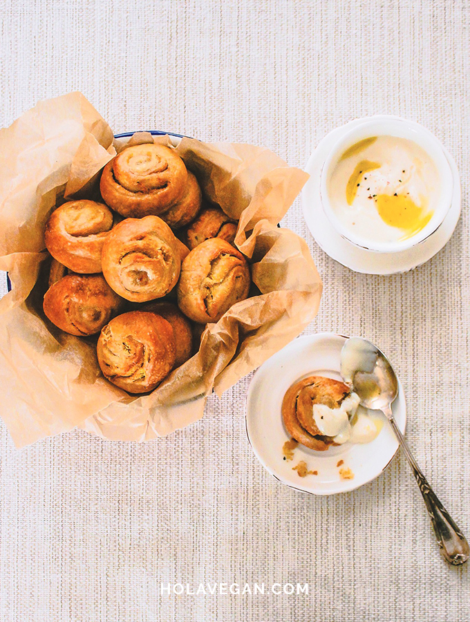 Si no tenés ganas de amasar (aunque la masa es mooooooooooy fácil de hacer), podés hacer estos rollitos con tapas de tarta compradas (apta vegan).