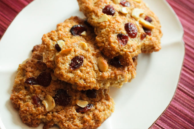 Esta es una receta de Isa Chandra Moskowitz, del libro “Isa Does It”, lo único que le cambié, es que, en lugar de frambuesas frecas usé cranberries disecadas, porque no tenía frescas y agregué algunas castañas de cajú.
