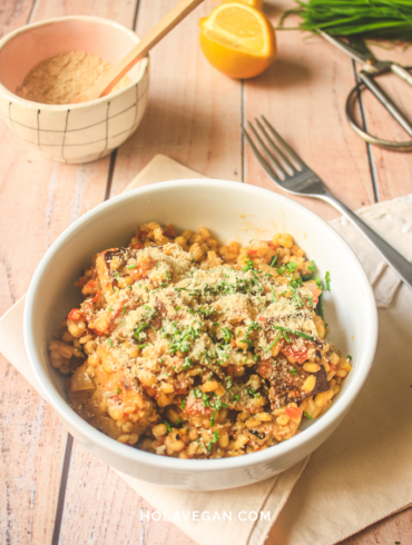 Un guisito reconfortante: una reversión del clásico “arroz con pollo” pero sin pollo y ¡sin arroz! Hecho con cebada y con tofu, pero con todo el sabor de un plato tradicional.