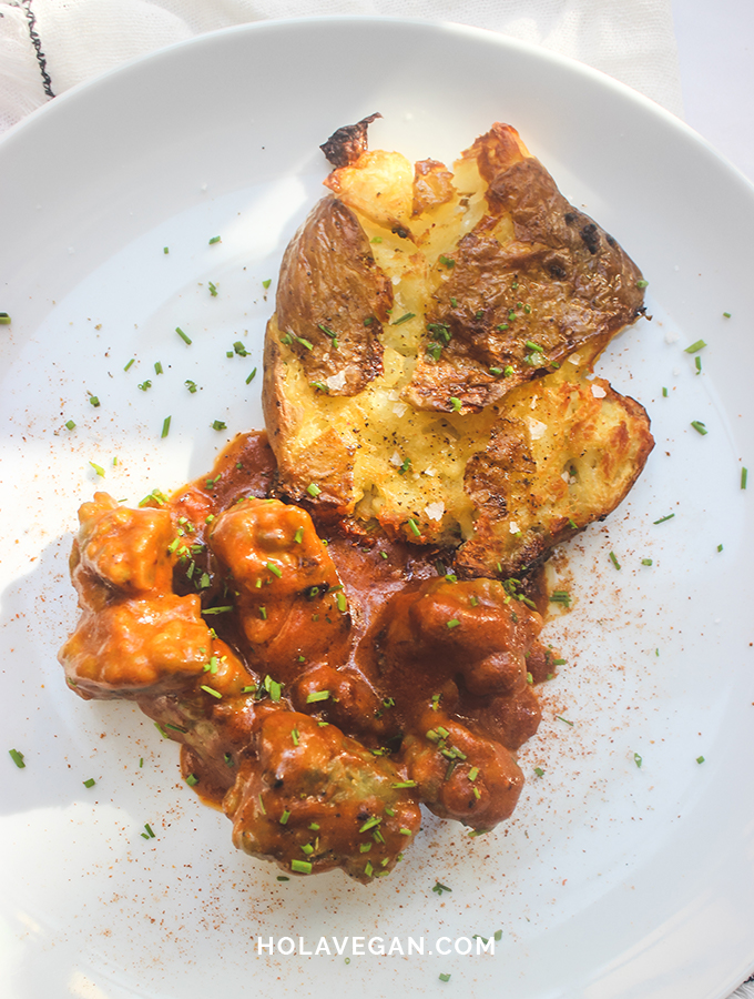 - Emplatar el tempeh con la salsa, la papa y terminar con ciboulette o perejil picado.