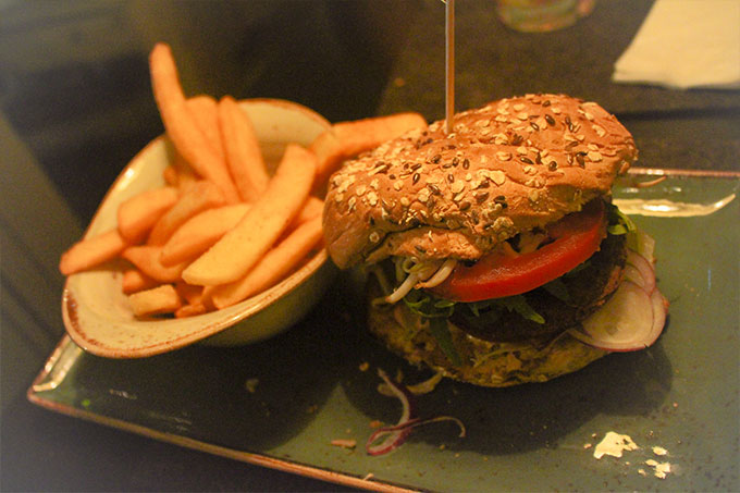 Un día, llevé a todo el familión (éramos 8) a una hamburguesería MUY pro, sólo porque en el menú había una HAMBURGUESA VEGANA. Diooooooos! lo feliz que fuí cuando leí ese menú.