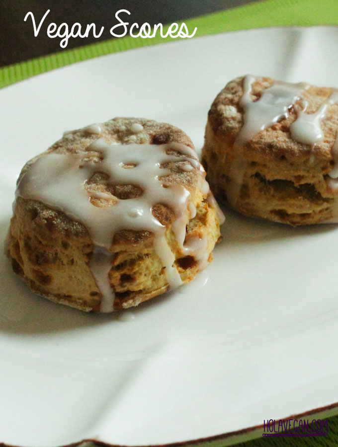 Con sólo 4 ingredientes y en unos pocos minutos, podés estar disfrutando de estos deliciosos scones, perfectos para tomar el té o desayunar. Una receta muy fácil y rápida. No lleva margarina ni aceite de ningún tipo, la grasa es aportada por la leche de coco. Podés usar harina blanca o harina integral super fina, yo usé de espelta. Azúcar mascabo y polvo de hornear. NADA MÁS! Podés ponerle pasas, si querés, ralladura de limón, si te gusta o chips de chocolate, pero así solitos quedan muy ricos. Yo decidí cubrirlos con un glaseado de limón (jugo de limón y azúcar impalpable) pero también, podés servirlos así solos o espolvorearlos con un poco de azúcar glas.