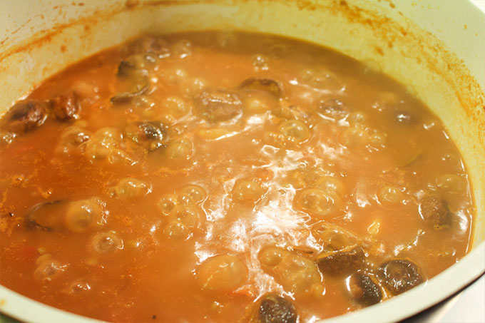 - En aproximadamente 1 hora, se habrá reducido el líquido y se habrán concentrado los sabores. Si falta, ir agregando agua para que no se pegue.