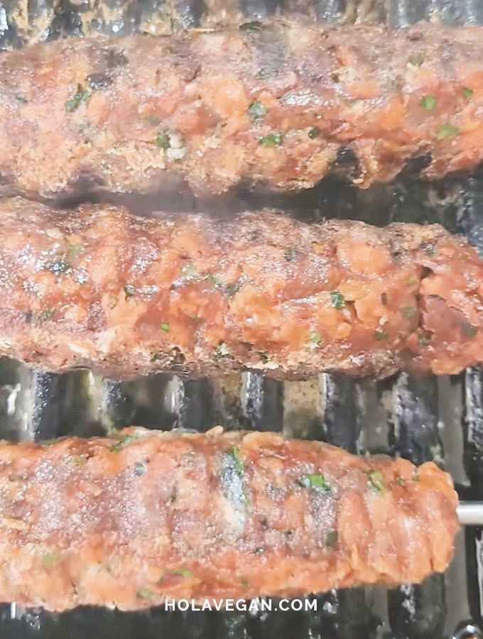 Hacía rato que tenía ganas de veganizarlo, porque es algo simple, sería algo así como una albóndiga alargada, puesta en un palo de brochette. El detalle está en las especias con las que condimentamos la “carne” que en este caso es soja texturizada.