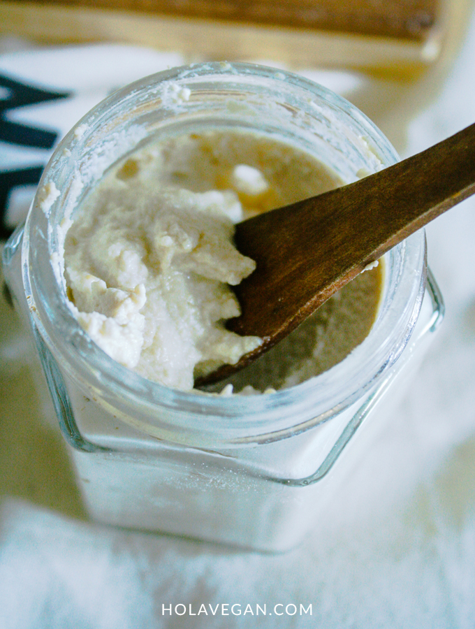 Esta receta de queso cremoso no es más que una receta para hacer tofu sedoso, con algún que otro condimento. Hacer tofu es algo que no requiere demasiados pasos, pero sí bastante tiempo. En primer lugar, hay que hacer la leche de soja -mínimo dos litros para obtener un frasquito de queso, porque se desperdicia bastante-. Después hay que dejar reposar el cloruro de magnesio que es lo que corta la leche. Y luego hay que colarlo y esperar que cuaje.