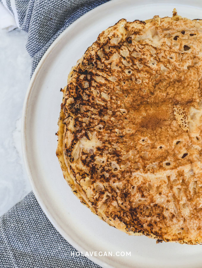 El mix de harina sin gluten no es muy sabroso por lo que, a diferencia de los clásicos panqueques, acá agregamos algunos ingredientes para aportar complejidad de sabor: sal kala namak, levadura nutricional y nuez moscada.