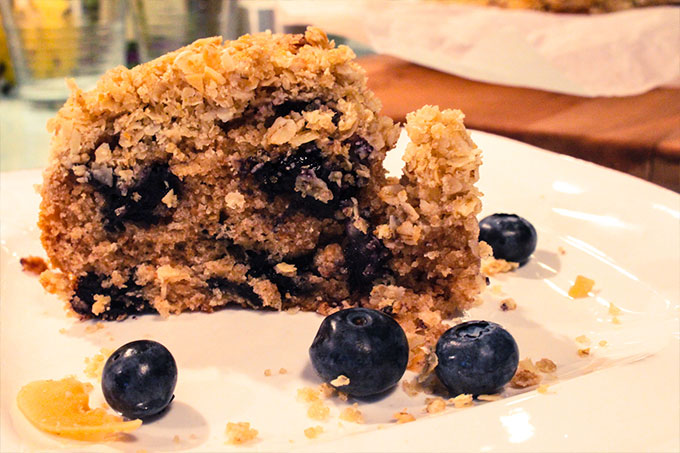 Una torta deliciosa para tomar una rica taza de té. El perfume del limón, el toque de la canela, la acidez de los arándanos, el dulzor de un crumble crocante hecho con coco, almendras y avena.