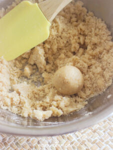 Ir agregando las cucharadas de agua de a una y uniendo la masa con una espátula. La masa queda con una consistencia arenosa