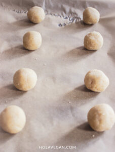 Formar bolitas del tamaño deseado y acomodar en una placa con papel manteca