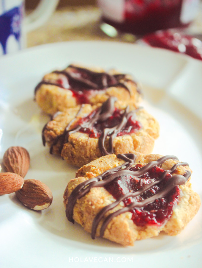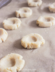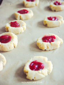 Con la ayuda de un objeto redondeado (yo uso el palo del mortero) presionar suavemente para hacer un orificio en la galleta