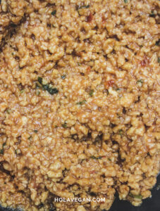 Cubrir la arveja texturizada con el líquido y dejar hidratar hasta que lo absosba por completo. (Unos 5-7 minutos)